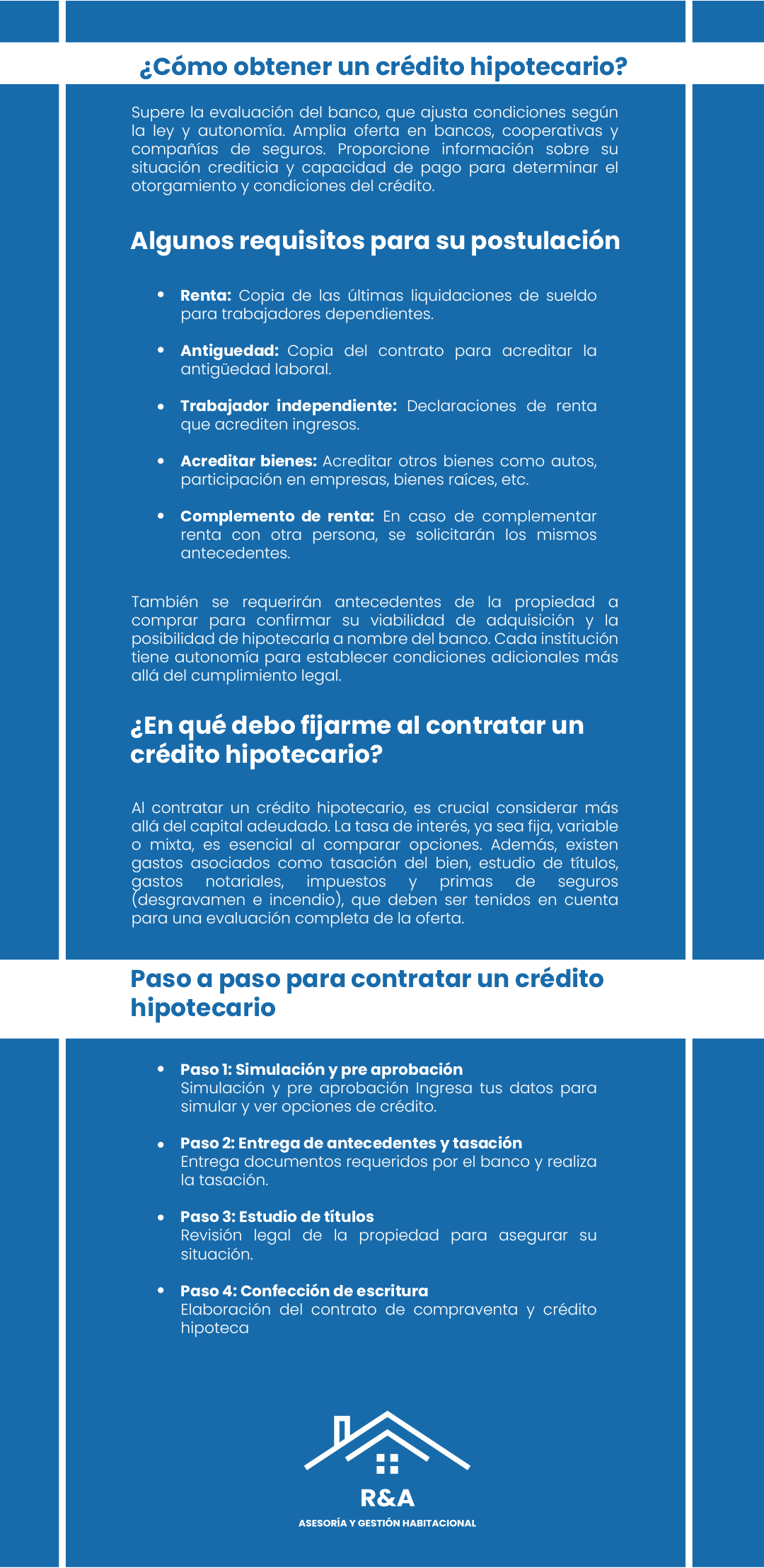 En Asesorías R&A, nos dedicamos a proporcionar servicios de asesoría inmobiliaria de alta calidad, adaptados a las necesidades específicas de cada uno de nuestros clientes. Con años de experiencia en el sector y un profundo conocimiento del mercado inmobiliario, nos hemos consolidado como un referente de confianza y profesionalismo.